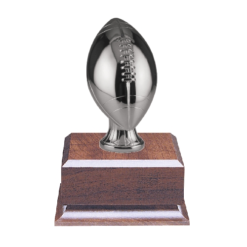 A wonderful silver football trophy on a wooden